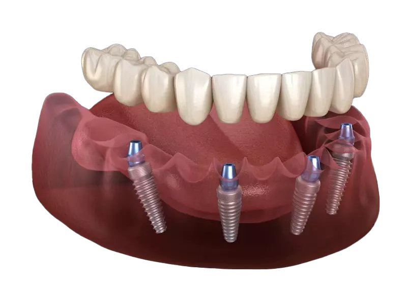 The All-on-X dental implant technique is a revolutionary approach designed to replace an entire set of teeth using just four strategically placed implants per arch. These implants serve as a strong foundation for a fixed denture, offering the appearance, feel, and function of natural teeth. Depending on your needs, this procedure can be performed on the upper arch, lower arch, or both, restoring your smile completely.